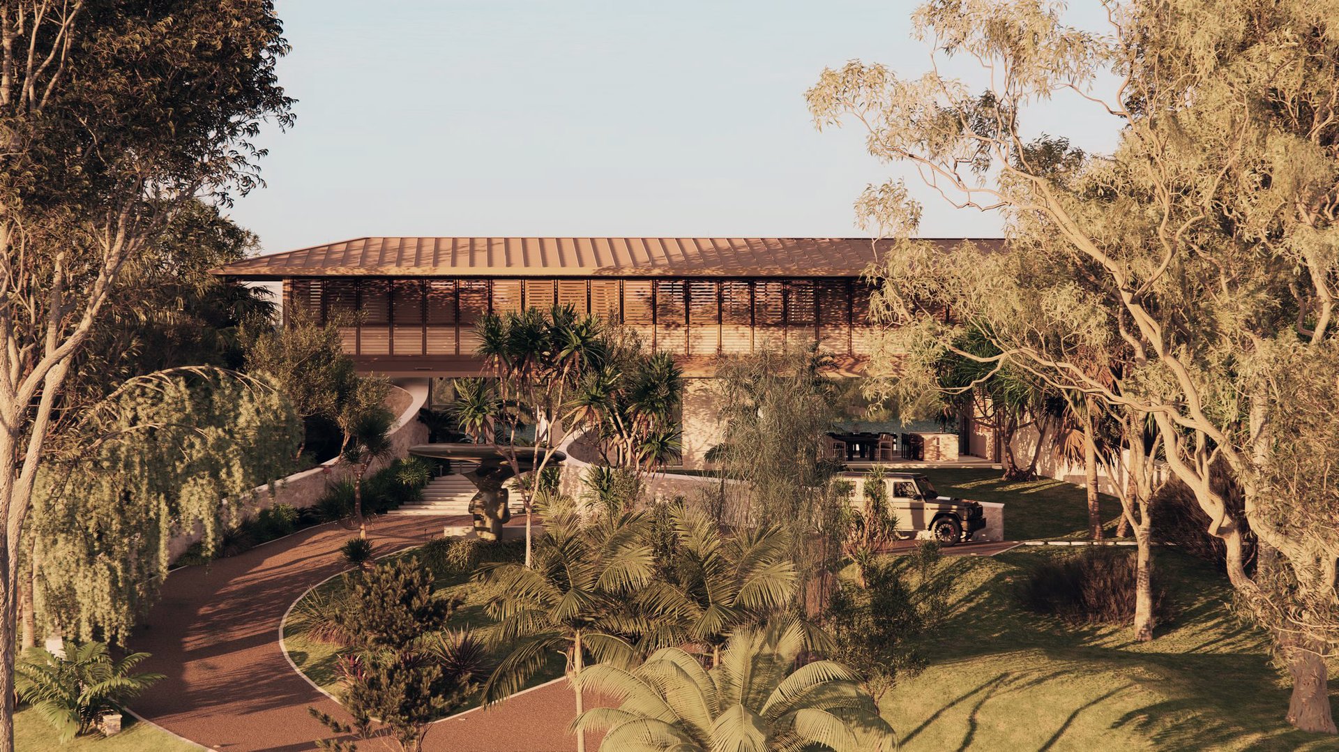 We positioned the house full width across the site, with the primary facade as an opening louvered screen.