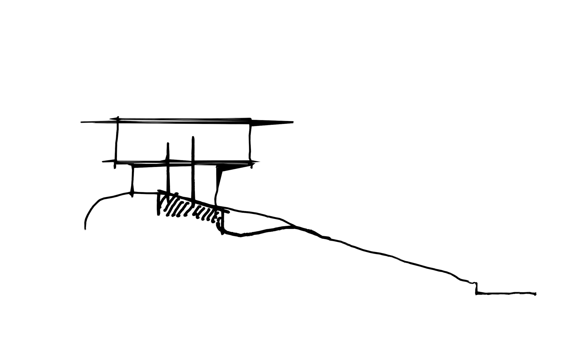 On approach to the villa from lower on the hill, local stone walls offer a neutral material palette to dissolve the home into the hill which sweep up and under the building, holding the landscape and setting the building into the ground at the crest of the the site.