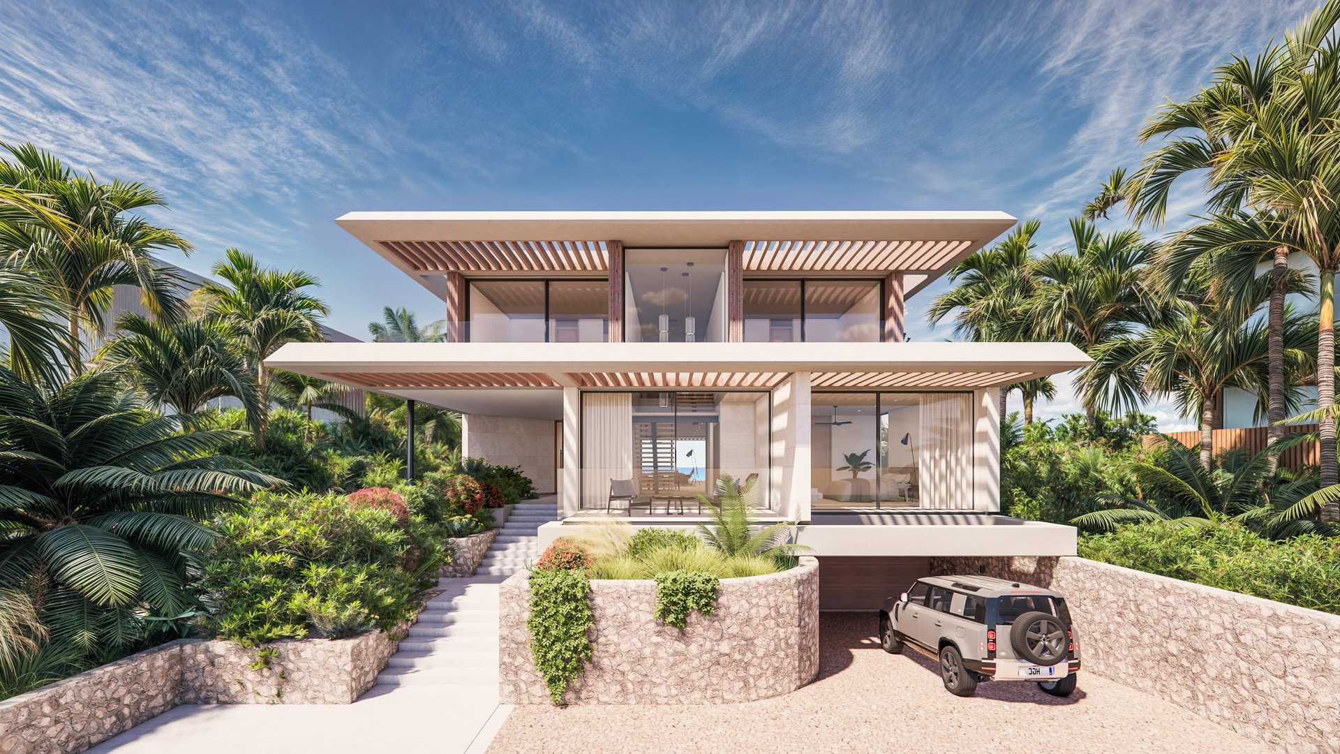 This pair of villas forms the final component of our South Bank Masterplan. The two lots are located on the ironshore bluffs that abut the newly formed South Bank Beach. The design of these homes sought to respond to the natural conditions of the site from east to west, and the scale of buildings that neighbour to the north and south.