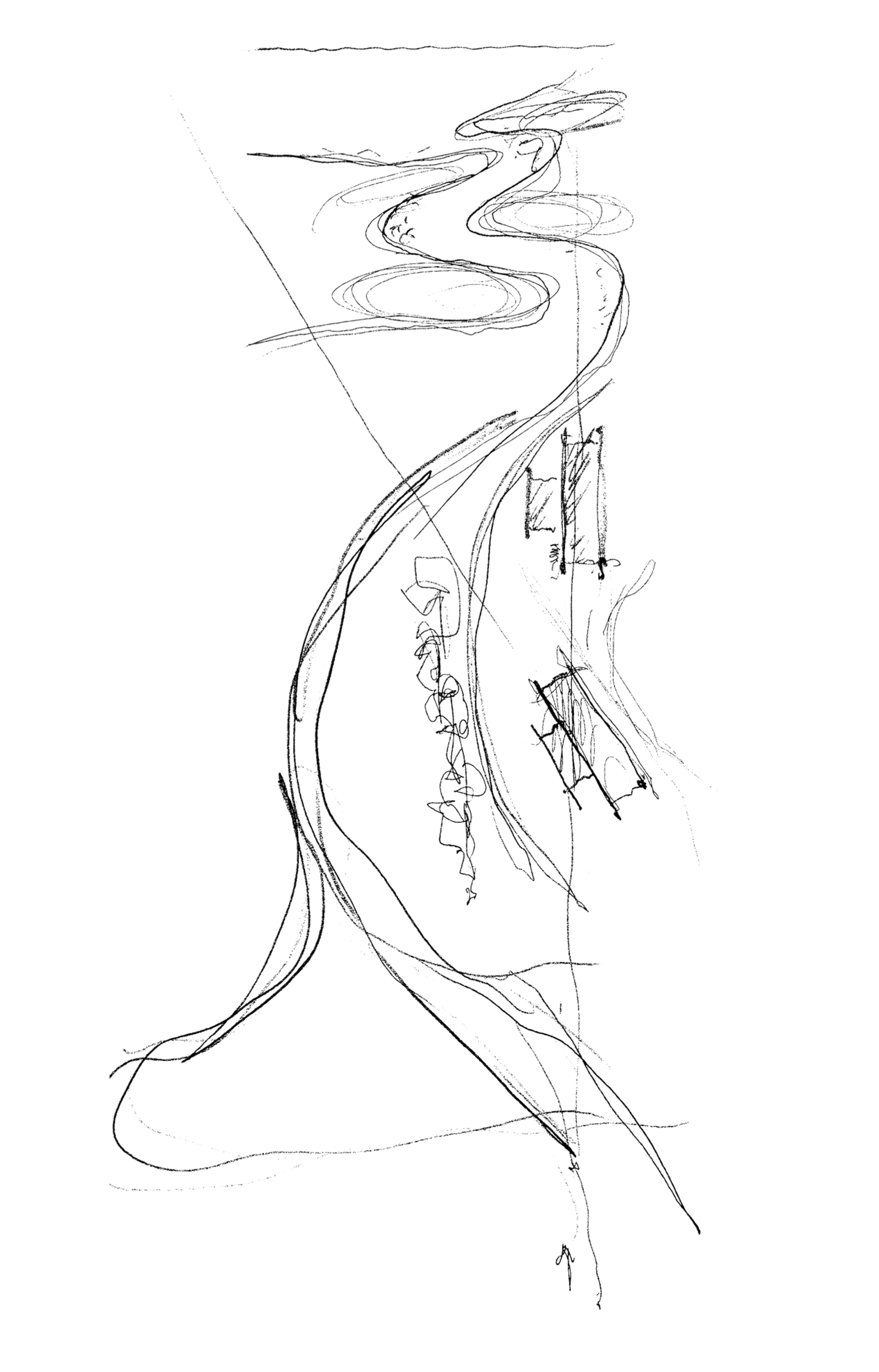 The site itself is long, thin and arcing. It spans between a meadow to the south and the water’s edge to the north. We positioned the main house to the far north, and a guest house to the far south, with the distance between them providing for a terrace garden with orchard whilst affording views of the water and meadow to both buildings.
